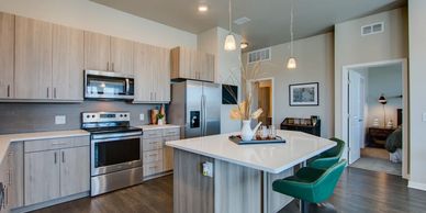 New construction apartment building built in 2022. 32 units total with Daltile's White Ice series quartz.
